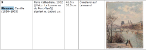 Shortly after reports that two of the objects found in Cornelius Gurlitt’s possession in 2012 would “be restituted “soon” to the families from which they were looted under Nazi auspices pursuant to the three recommendations of the Gurlitt Task Force to date, the Task Force has now issued a fourth recommendation. The newest work to be identified for restitution is a Camille Pissarro painting, The Seine seen from the Pont-Neuf, the Louvre in the background.