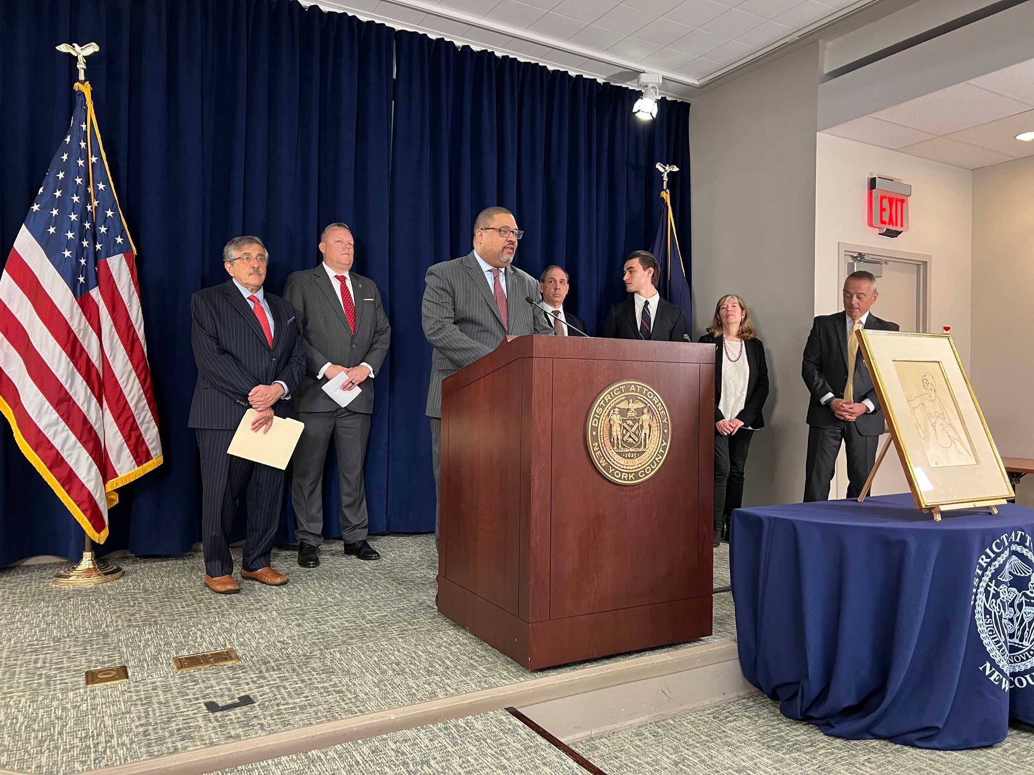 I attended today’s press conference at District Attorney Alvin Bragg, Jr.’s office in Manhattan at which a drawing by Egon Schiele, Seated Nude Woman, Front View, was transferred to the heirs of Fritz Grünbaum. I represent the family of Gustav (“Gus”) Papanek, who relinquished the drawing to the District Attorney earlier this year. This case spotlights, once again, the breadth of Nazi crimes more than 80 years later. The Grünbaum story has rightly received considerable coverage (including a chapter in my book A Tragic Fate—Law and Ethics in the Battle Over Nazi Looted Art), my clients’ story is not widely known. I was honored to represent them today and throughout the process.